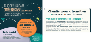 Le Chantier pour la transition a lancé le 14 avril dernier la programmation officielle du forum Traçons demain. Cet événement vise à mobiliser la population autour des enjeux de transition sociale et écologique et à imaginer collectivement un avenir plus solidaire et durable.