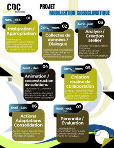 Sensibiliser les différentes actrices et acteurs du territoire aux enjeux socio-climatiques et mettre en place un espace de co-apprentissage pour les organismes communautaires.